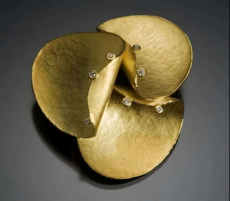 當代首飾設計中,金屬表面肌理存在的形式各有不同,表現方法及工藝也多種多樣。首飾設計師提取各種肌理進行推敲、對比、重構后選擇最具代表性、最可將其質感和作品敘事相結合的肌理融入到作品里,創造出人為的、藝術的金屬肌理之美。