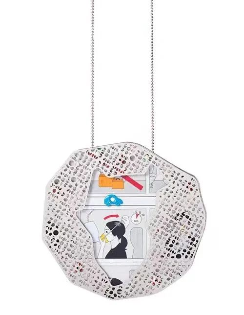 在2013年的個展In The Air中,Deganit 把重點聚焦在物體和空間的關系而不是物體本身。上圖作品中,鑲嵌在胸針與吊墜之間的石頭好像“在空中”。其中一些吊墜是從飛機安全說明中剪下來的,也非常符合展覽的主題。