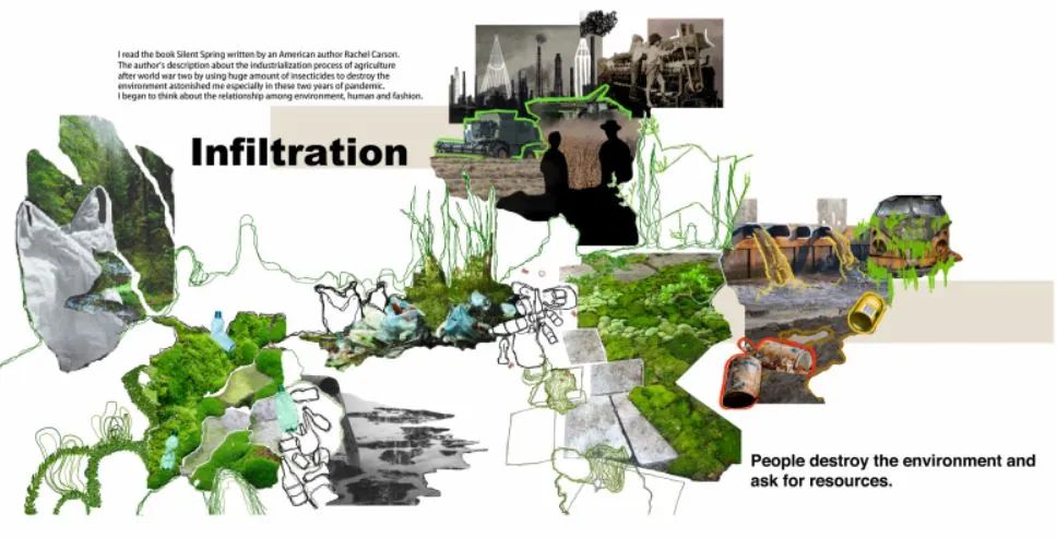 我最喜歡的項(xiàng)目是Infiltration滲透。這個項(xiàng)目主要反映的是人類造成的污染,一步步滲透進(jìn)森林,滲透進(jìn)土地和植物的一個過程。