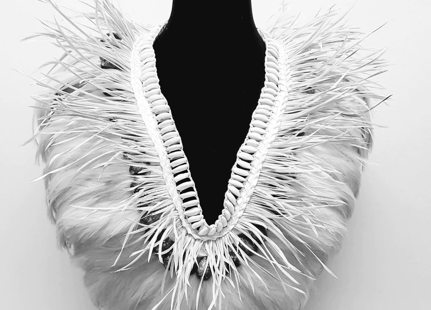 Seinileva Huakau 是一位陶藝家和有著湯加血統的紡織人,他在西悉尼長大,現居住在昆士蘭地區。她的創作源于與傳統材料、故事和習俗的緊密聯系。Huakau 通過與 WeAve Parramatta(一個跨文化團體)合作進行紡織創作,通過紡織品藝術將不同的個體聯系起來。在本次展覽中,她使用首飾、服裝和塑料的碎片來編織代表不同世代在共享空間中制作的服裝和項鏈。
