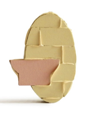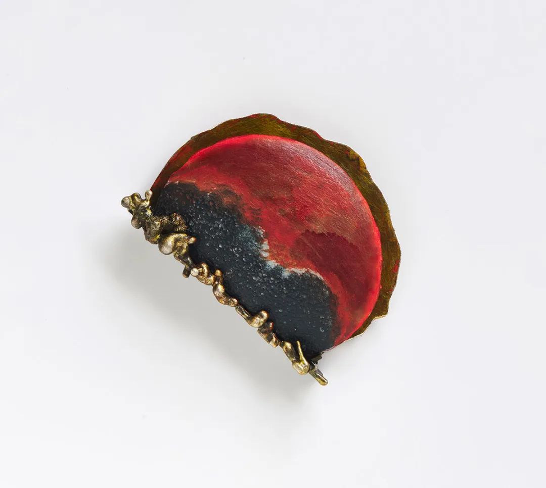 從本質(zhì)上講,Moty 精心制作且耗時的過程始于尋找合適的石頭——石匠已經(jīng)對其進行了改造——然后從那里開始“建造”。藝術(shù)家參與到選擇石頭的色調(diào)、形狀和特征。與其他形式的首飾相比,她更喜歡胸針,她說:“胸針不需要佩戴就可以完整……不必將其貼合身體……我可以專注于雕塑方面。”