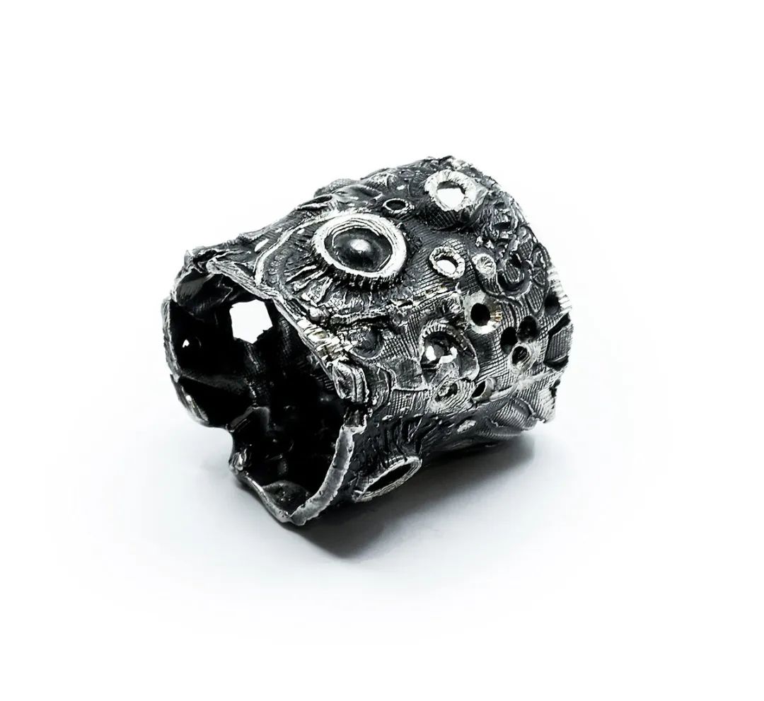 這些獨特作品起源于他喜歡的一些材料的質(zhì)感:木材、種子膠囊、皮革、紙、金屬和牛角。通過一系列過程,它們被改造成最終的美麗。他將修道院工藝的技能與對高級時裝的敏感性相結(jié)合,創(chuàng)造出令人驚嘆的當代首飾。