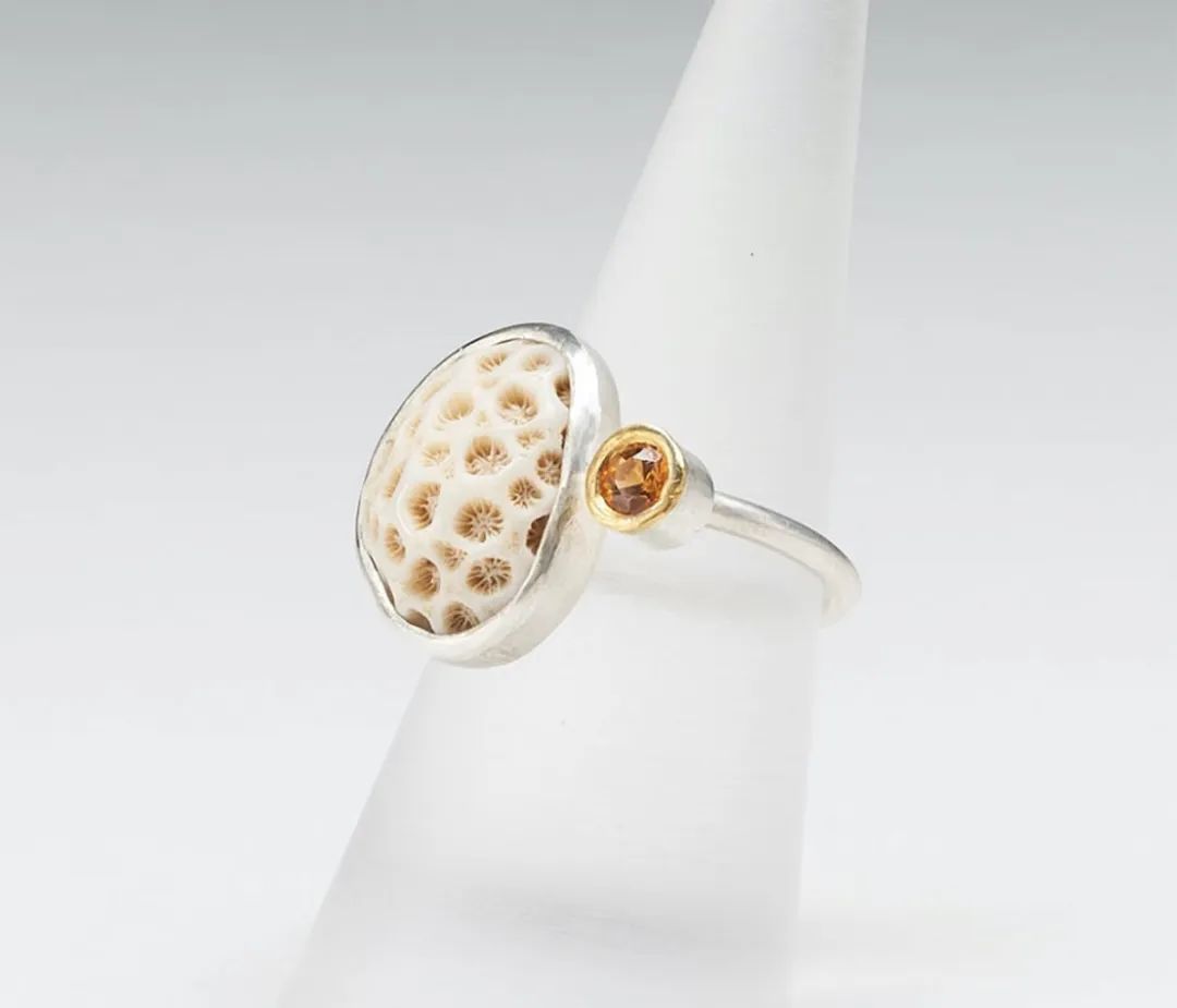 Ring: Coral skeleton & Orange Sapphire, 2022