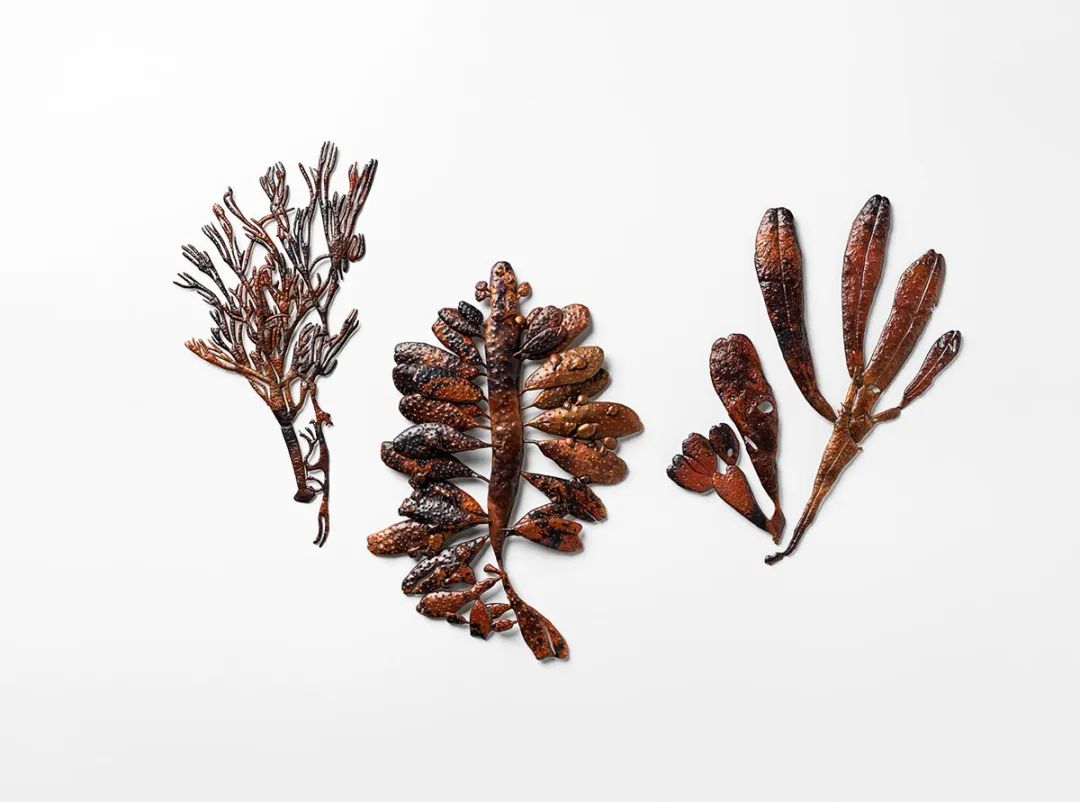 Julie Blyfield 是一位南澳大利亞藝術(shù)家,她的作品以收集的植物標本和形態(tài)為靈感而聞名。Blyfield 使用傳統(tǒng)的金屬加工技術(shù)達到凹凸不平的效果,創(chuàng)造出具有復雜紋理的作品,捕捉了澳大利亞自然景觀的精髓。