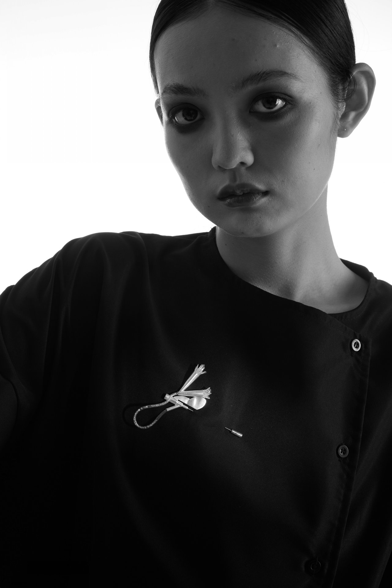 《閃爍的水滴》系列作品的靈感來自于我手臂上的一個疤痕,這個疤痕是在我生病期間由留置針留下的。在我住院治療的一年里,這根留置針一直保留在我的手臂上。隨著時間的流逝,我逐漸覺得它就像是一件飾品被佩戴在我的手臂上。因此,我開始思考將醫(yī)療器械轉(zhuǎn)化為首飾的可能性。在這個項目中,我的三件作品分別來源于與自身經(jīng)歷相關(guān)的三件醫(yī)療器械:輸液器、留置針和醫(yī)用貼紙。并在作品中加入了珍珠和水晶等材料來表現(xiàn)輸入身體的藥品和我的血液,使作品在還原使用過程的同時也增強了其作為首飾的裝飾性。
