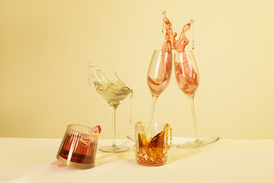 One of my hobbies is tasting and mixing cocktails. During drinking and mixing, the liquid is often in an unstable state. Appreciating the sight of the transparent liquid flowing is another enjoyment mixing cocktails brings me, aside from the delicious taste. As a jewellery designer, I capture the moment when the liquid splashes and design it into jewellery stands and matching accessories. The outcome of the 'Elixir Cascade' project includes four sets of jewellery stands and accessories inspired by different cocktail glasses and cocktails. The stands are made through modelling and 3D printing, with earrings, necklaces, and pendants made of bead strings hanging on them. The bead strings and pendants simulate the splashing liquid and the decorative elements on cocktails. The pendants sway when the stands are moved, appearing lively and light.