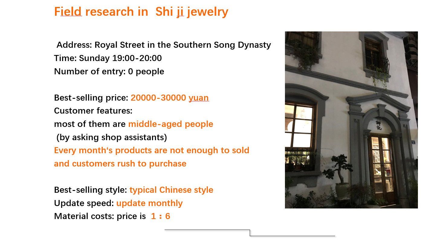 The core of my research is the “Modern Management of Hangzhou Customization Fine Jewellery Industry”. Drive by my own knowledge from jewellery industry, and combine with plenty of primary and secondary researches, I came out with market promotion and planning report suit for the jewellery company which would like to explore Hangzhou Customization Fine Jewellery business.