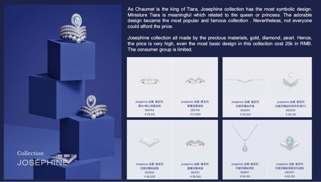 In my perspective, the learning process of jewellery management is becoming the strong connection between designer and clients. Help designer to present the concept and story to the wear, collect feedback from viewer to the maker. During the learning and practicing, I find the important of brand research. In the final report, I chose the famous French luxury jewellery brand CHAUMET as target. From its background, supply chain, 8P definition, consumer, competitor, environment, and SWOT to get conclusion for its future promotion. I understood connection during culture, art, and jewellery much better and great promotion strategies of a good luxury jewellery brand.