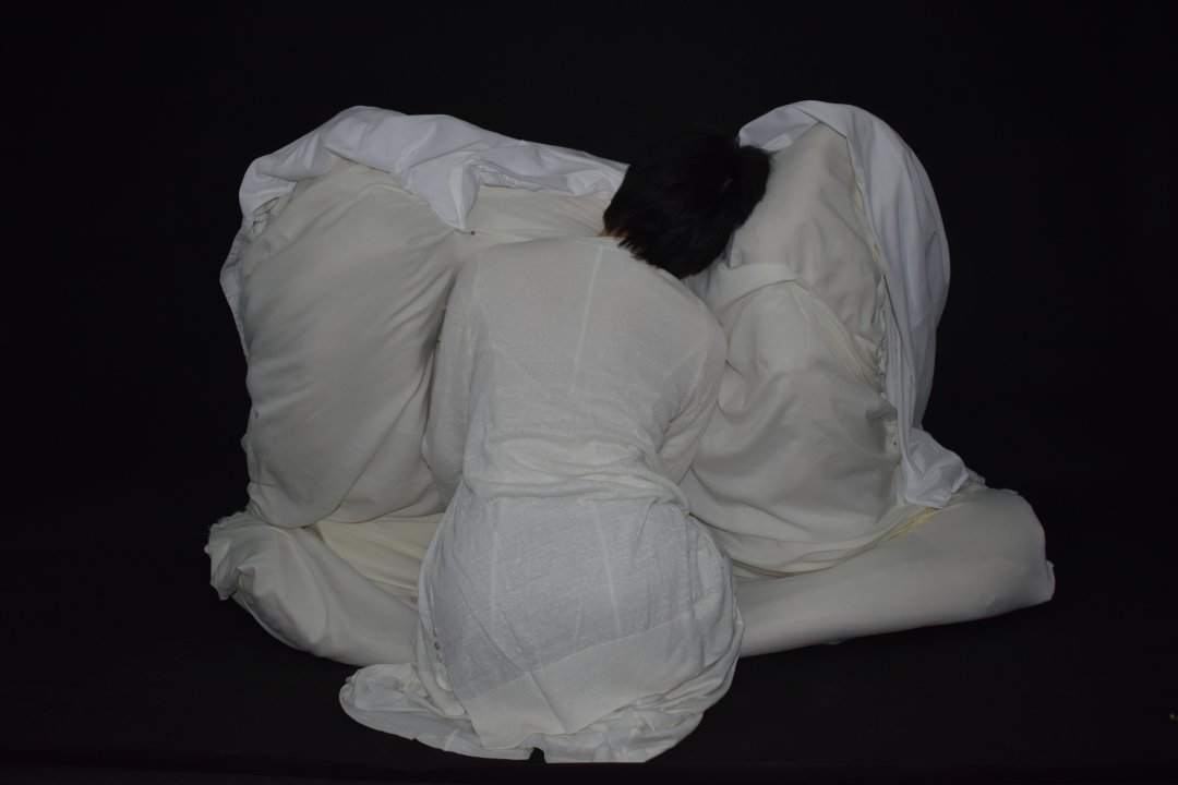 《被子之神》這件作品源自于我對被子的異常迷戀。當(dāng)我對一件物的情感達(dá)到了異于常態(tài)的狀態(tài),物變成了主宰者——神,而我則變?yōu)榱宋锏母綄倨贰_@件作品,闡述我將作品神化的一個(gè)過程。